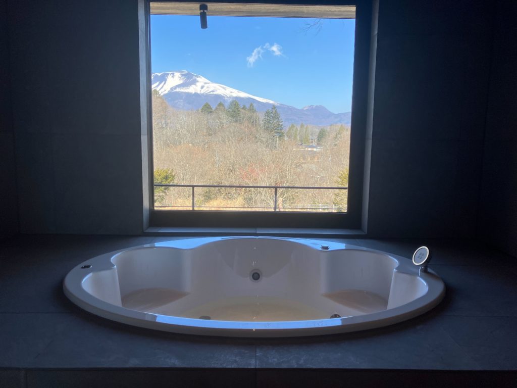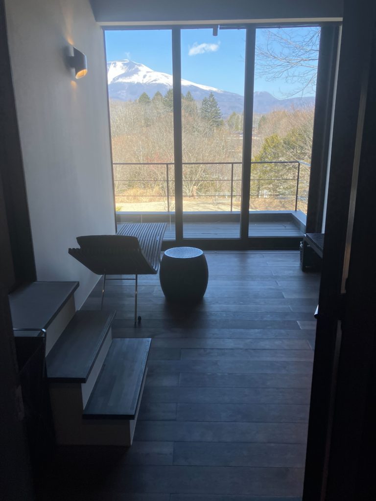 北向きに造られた室内からは、迫力満点の浅間山の様子を楽しめます。
